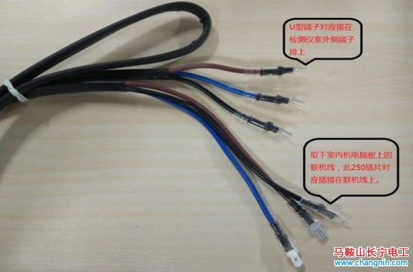 ①請(qǐng)將檢測(cè)儀的端子按照: 棕線—L(火線) 藍(lán)線—N(零線) 黑線—C(通訊)的對(duì)應(yīng)關(guān)系連接,利用空調(diào)聯(lián)機(jī)線將檢測(cè)儀串聯(lián)在室內(nèi)機(jī)與室外機(jī)之間,確保對(duì)應(yīng)連接關(guān)系正確,否則是會(huì)導(dǎo)致誤判,甚至?xí)p壞檢測(cè)儀。