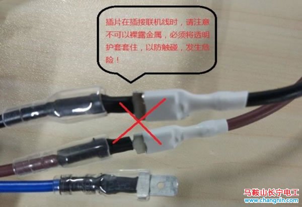 注意: 連接配線 2 時(shí), 插片不可以裸露金屬,必須利用透明護(hù)套將其套住,以防端子間相互碰觸,發(fā)生危險(xiǎn)。
